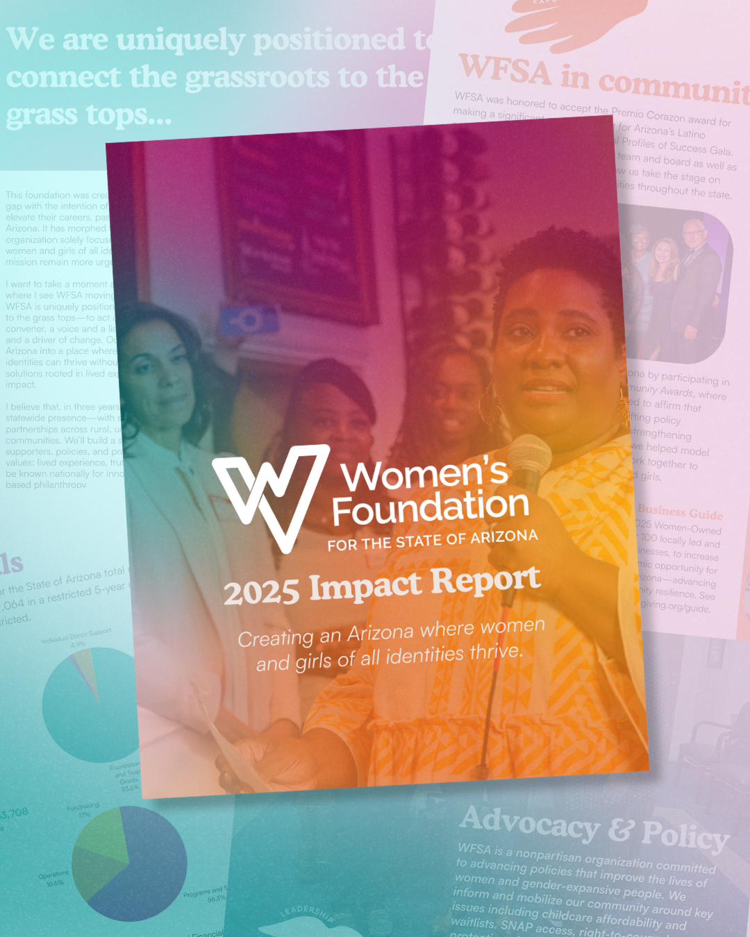 The Women’s Foundation for the State of Arizona (WFSA) innovates to create social, political, and economic change that achieves equity for women and girls of all identities through our integrated framework of research, advocacy, grantmaking, and innovative programmatic solutions.